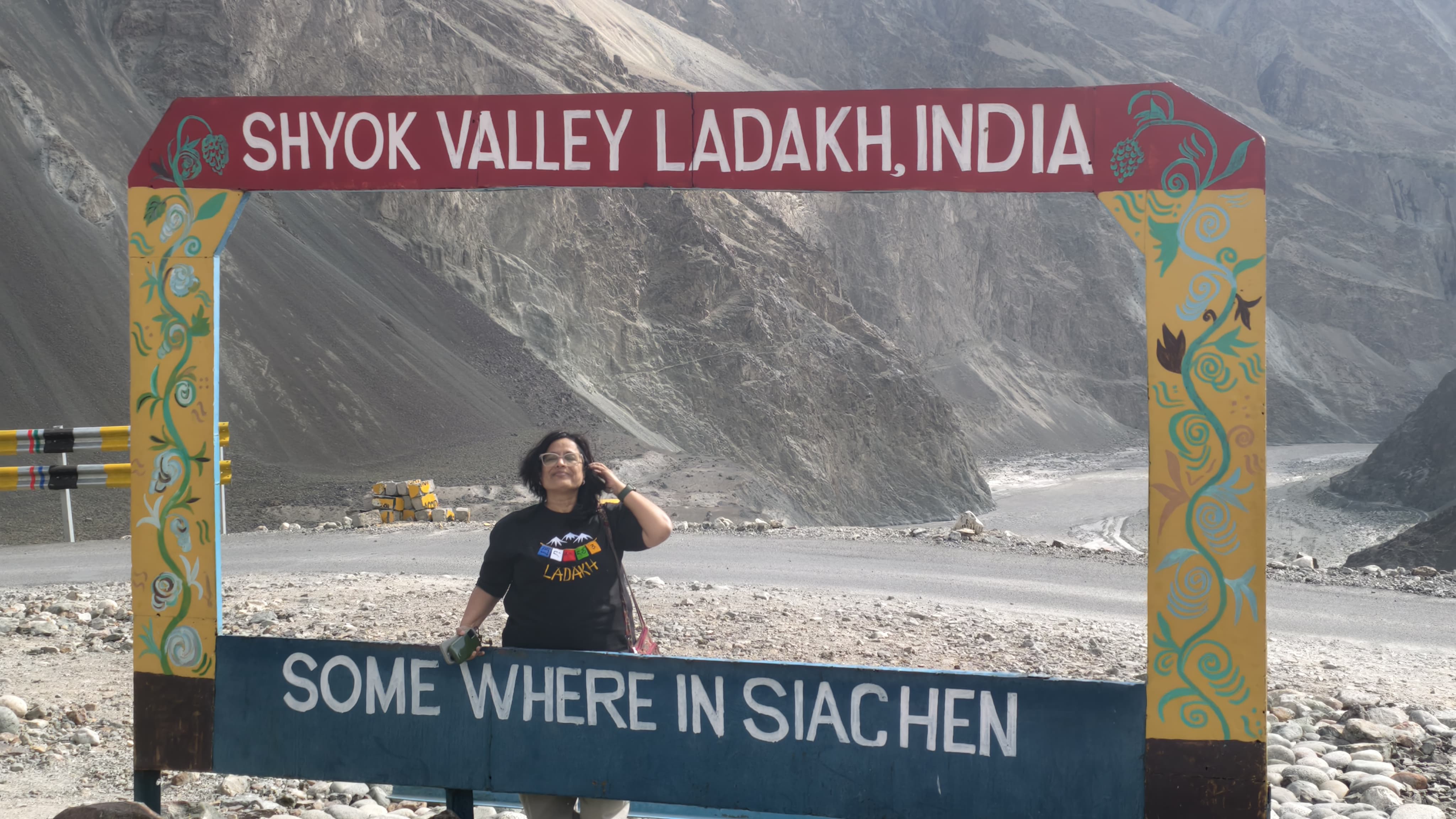 एका बाजूला सियाचीन, दुसऱ्या बाजूला पाकिस्तान आणि मधल्या चिंचोळ्या भागातून आमची गाडी धावत होती. पाकिस्तान तर अवघ्या 20 किमीवर अंतर दूर होता. मात्र भारताच्या संरक्षणासाठी उंचच उंच हिमालय एका सरळ रेषीय पर्वताने सिद्ध झालेला होता. त्याचं हे कठीण रूप बघून मन अचंबित झालं. कारण इतका वेळ असणारे वाळूचे ढिगारे, चिखलमातीचे ढिगारे अशाच रुपात त्याला बघितलं होतं. इथे मात्र त्याने आपलं सौम्य रूप बाजूला ठेवून त्याने जणूकाही धारदार तळपती तलवार उपसली होती. माझ्या देशाच्या वाटेला जाल तर चिंधड्या चिंधड्या उडविन असं तो म्हणत असावा. तिथूनच श्योक नदी नेमून दिलेल्या मार्गावरून शिस्तीचं पालन करत धावत होती. हिमालयाचं हे रूप बघून हे खरं की आसाम-मेघालयामधलं त्याचं हिरवं रूपडं खरं, की स्पिती व्हॅलीतून दिसणारा हिमालय खरा की हा खरा असा संभ्रम मनाला सारखा पडत होता.
