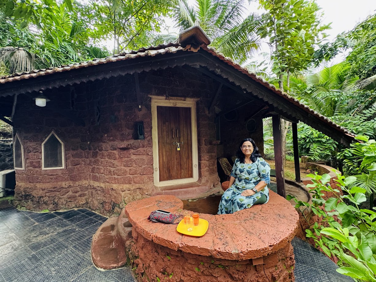 कुडाळवरून 25 किमी अंतरावर असलेल्या आजपेवाडी इथल्या ग्रॅटिटयूड या होमस्टे च्या ठिकाणी पोहोचलो. इथे अद्वेत या तरुणाने आमचं स्वागत केलं. आम्हाला इथल्या सक्सेस या खोल्या आवडल्या. खास आर्किटेक्टने या खोल्यांचं डिझाईन केलं होतं. लालसर विटांमधल्या या खोल्या लंबगोलाकार आकाराच्या होत्या. ओबडधोबड असल्या तरी त्यांचं सौंदर्य काही औरच होतं. आतमध्ये खांब, कोनाडे, खुंट्या, बसायला चौथरा, आतमध्ये एका गोलात वॉशबेसीन आणि आरसा, बाजूलाच मोठा जमिनीपर्यंतचा आरसा, आणखी आतल्या गोलात गेल्यावर आंघोळीची जागा. सगळ्या गोलांमधून बाहेर आल्यावर झोपण्याची जागा. भिंतींमध्ये हिरव्यापिवळ्या लालसर रंगांच्या बाटल्याही फिट केल्या होत्या. तसंच जमिनीवर शंख, शिंपले, गारगोट्या, असं बसवलेलं होतं. रात्रीच्या वेळी या बाटल्यांमधून त्या त्या रंगाचा प्रकाश खोलीत झिरपत होता. सोलार सिस्टिममुळे गरमागरम पाण्याने फ्रेश होऊन आम्ही किल्ले निवती बीच बघण्यासाठी सज्ज झालो.