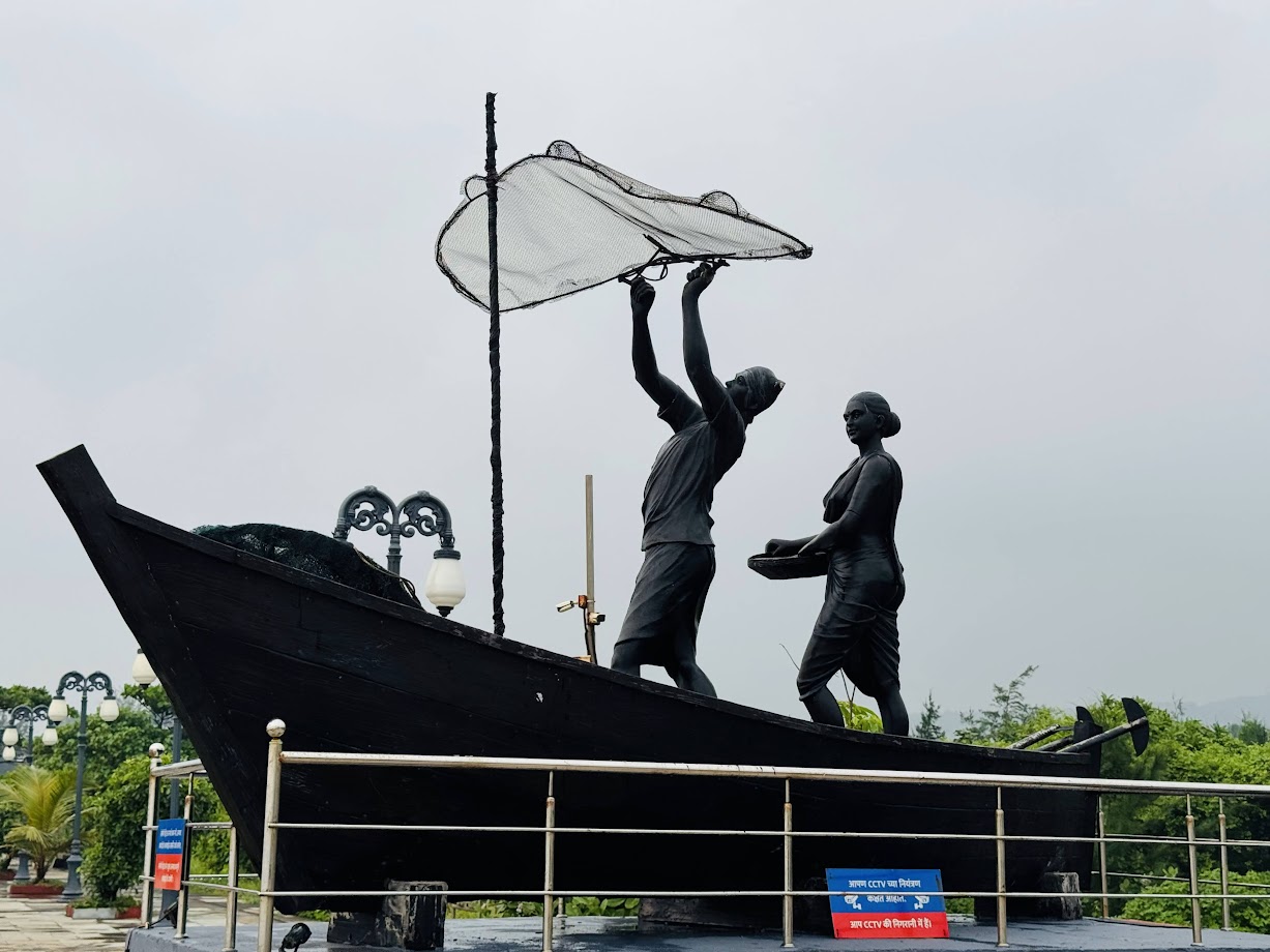 आधीच हिरवीपोपटी असलेली झाडं पावसामुळे आणखीनच ताजीतवानी झाली होती. रस्ता काहीच मिनिटांत संपला आणि आम्ही श्रीवर्धच्या समुद्रकिनारी पोहोचलो. मुंबईच्या नेकलेस पॉइंटसारखा हा समुद्रकिनारा सजवला होता. पायऱ्या चढून थोडं वर जाताच एका भल्या मोठ्या खेकड्याच्या शिल्पाने आम्हाला दर्शन दिलं. भंगारामधून तयार केलेला हा खेकडा मला खूपच आवडला. तिथून डाव्या बाजूने वळताच मुलांसाठी खेळायची साधनं, व्यायामाची साधनं, सुरेखसे लँप, पावसापासून बचाव करण्यासाठी षटकोनी आकाराच्या लोखंडी झोपड्यासदृश छत्र्या, चालण्यासाठीचा मार्ग, मच्छिमार जोडपं जाळं टाकतानाचं सुरेखसं शिल्प. इथूनही पटकन जाऊ नये असंच वाटत होतं, मात्र मोह आवरून आम्ही पांढऱ्या वाळूच्या आरावि समुद्रकिनाऱ्याकडे निघालो. हा प्रवास थोडाच असला, तरी रस्ता अगदीच अरूंद होता, जणूकाही पाऊलवाट. एकच गाडी कशीबशी जाऊ शकेल असा. आम्ही सूर्यास्त बघण्यासाठी पोहोचत होतो, पण पावसामुळे सूर्याची ऐसी की तैसी झाली आणि आम्ही तो पाहू शकलो नाही. पण इथला आरावि समुद्रकिनारा देखील अप्रतिम असा होता. मन एव्हाना गुणगुणायला लागलं होतं: