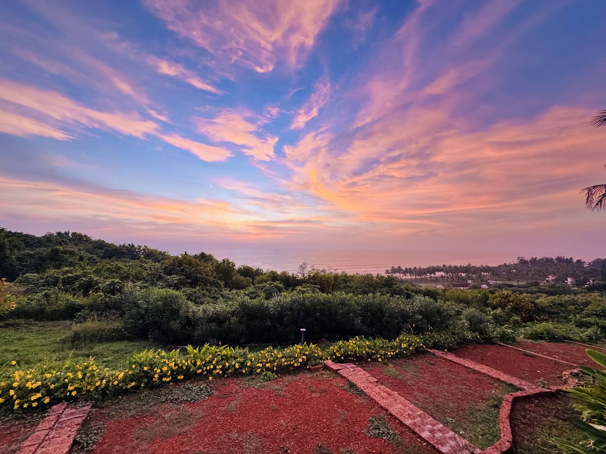 काहीच वेळात आम्ही गणपती पुळे इथे पोहोचलो. ओ’नेस्ट या चेनमधल्या नक्षत्र नावाच्या एका सुरेखशा हॉटेलच्या गेटमधून आम्ही प्रवेश केला. आदल्या दिवशीच केलेल्या बुकिंगमुळे तिथल्या सहाय्यकांनी आम्हाला आमच्या सामानासहित आमच्या स्वतंत्र बंगलारूपी जागेत पोहोचवलं. चार पायऱ्या चढून आत प्रवेश करण्याऐवजी मागे वळून बघितलं आणि आश्चर्याचा धक्काच बसला. समोर इतका विस्तीर्ण असा समुद्र पसरलेला होता आणि आपल्या लाटा झेपावून तो जणूकाही भेटायला येऊ पाहत होता. रिसोर्टच्या उजव्या बाजूला स्विमिंग पूल खुणावत होता. अंगातला थकवा जाण्यासाठी आम्ही स्विमिंग पूलमध्ये उतरलो. काहीच वेळात सगळा थकवा दूर झाला. बघता बघता सायंकाळ झाली आणि तिथून दिसणारा सूर्यास्त अप्रतिम असा होता. मी अपूर्व आणि सायली यांचे सूर्यास्तासोबत काही फोटो काढले. खरं तर आम्ही खूप उंचावरच्या रिसोर्टमध्ये असलो, तरी समोर दिसणारा समुद्र लाटांनी उसळत कोणत्याही क्षणी आम्हाला भेटायला वरपर्यंत येईल असं वाटत होतं. त्याची गाज कानाला सुखावणारी होती.