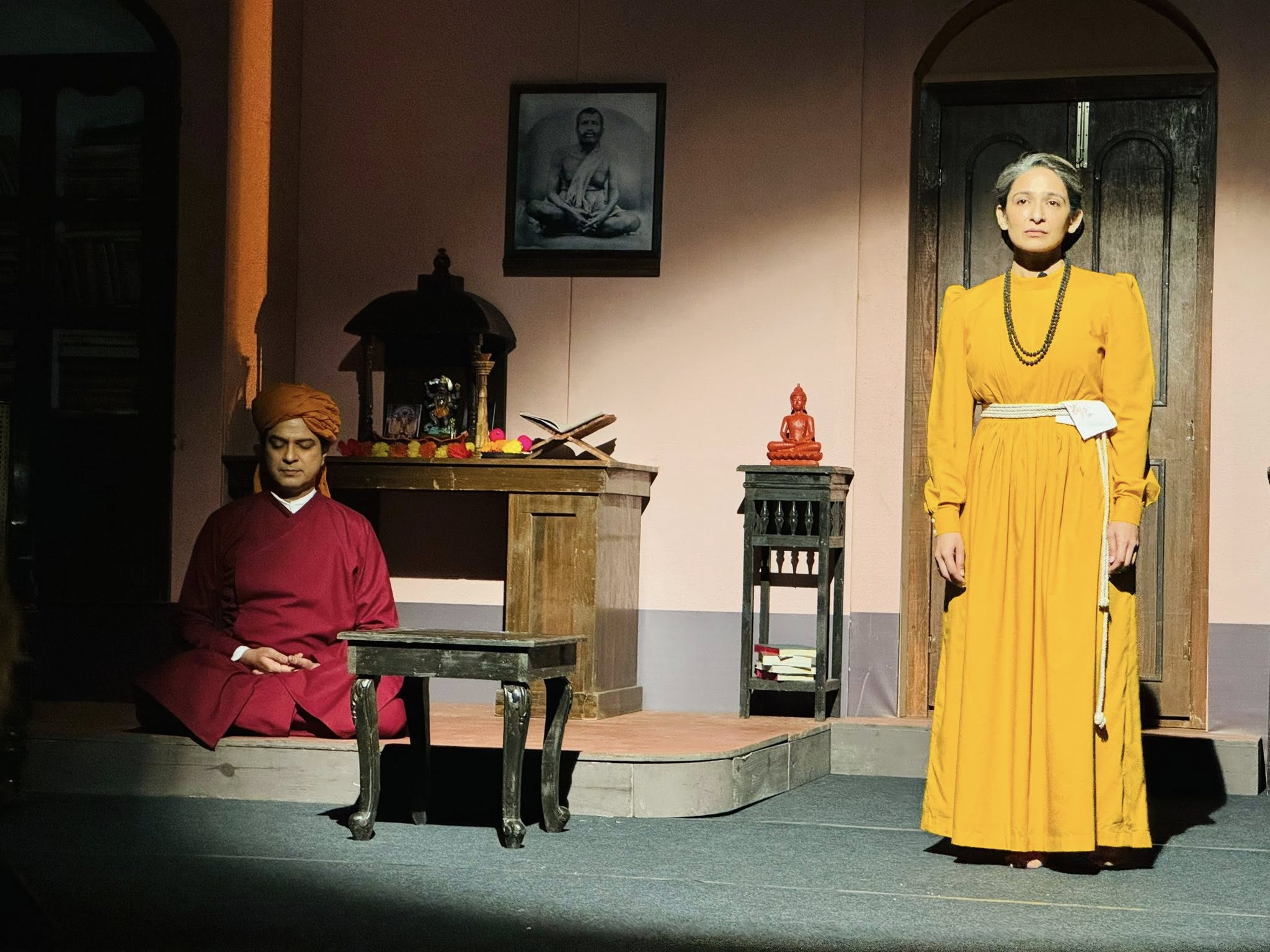 नाटक बघत असताना सचिन गावकरचं साजेसं नेपथ्य लक्ष वेधून घेत होतं. सेटवरच्या प्रत्येक वस्तूमधून बंगाली संस्कृती ठळकपणे जाणवत होती. मिलिंद जोशी यांचं संगीत मनाला आत्मिक शांती देत होतं आणि प्रतिमा कुलकर्णींचं दिग्दर्शन खूपच सहज स्वाभाविक वाटत होतं. (काही वेळेस त्यांनी विवेकानंदांना थोडी लाऊड ट्रिटमेंट का दिलीय हा प्रश्न मनाला पडला होता.) तसंच नाटक म्हटलं की त्यात रंगमंचावर सतत काहीतरी घडणं आवश्यक असतं, इथे त्याबाबतीत मर्यादा येत होत्या. कारण इथे दोघांमधला वैचारिक संवाद हाच या नाटकाचा पाया होता. मात्र दिग्दर्शिकेने अतिशय खुबीने हा संवाद कधी भूतकाळ, तर की वर्तमानकाळ यांना गुंफत तो साकारला हे विशेष.