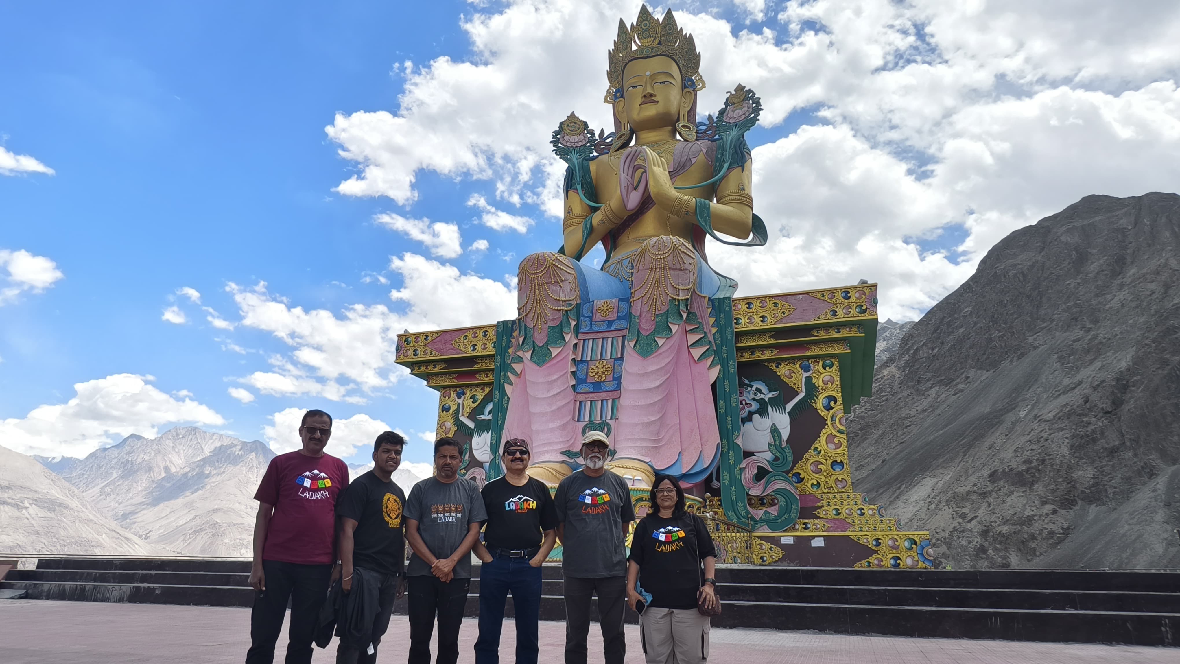 रस्त्याच्या कडेला असलेल्या एका हॉटेलमध्ये आम्ही जेवणासाठी थांबलो. आसाम-मेघालयप्रमाणेच इकडेही स्त्रियांचं राज्य दिसत होतं. काउंटरवर, वेटर म्हणून सर्वत्र खंबीर चेहऱ्याच्या स्त्रियाच दिसत होत्या. अर्थात पुरूष त्यांचे मदतनीस म्हणून इकडे तिकडे वावरताना दिसत होते. जेवण करून पुन्हा रस्त्याला लागलो. काही अंतरावर असलेली भव्य अशी बुद्धाची बसलेली मूर्ती खुणावत होती. लेहपासून 19 किमी अंतरावर सिंधू नदीच्या काळी ही डिस्कीट मॉनेस्ट्री वसलेली असून तिबेटमधल्या पोटाला पॅलेससारखीच ती भासली. ही मॉनेस्ट्री 12 मजली असून यात अनेक स्तूप आहेत.
