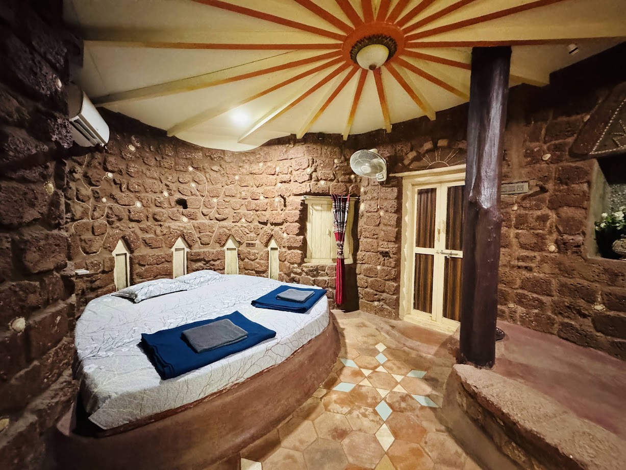 कुडाळवरून 25 किमी अंतरावर असलेल्या आजपेवाडी इथल्या ग्रॅटिटयूड या होमस्टे च्या ठिकाणी पोहोचलो. इथे अद्वेत या तरुणाने आमचं स्वागत केलं. आम्हाला इथल्या सक्सेस या खोल्या आवडल्या. खास आर्किटेक्टने या खोल्यांचं डिझाईन केलं होतं. लालसर विटांमधल्या या खोल्या लंबगोलाकार आकाराच्या होत्या. ओबडधोबड असल्या तरी त्यांचं सौंदर्य काही औरच होतं. आतमध्ये खांब, कोनाडे, खुंट्या, बसायला चौथरा, आतमध्ये एका गोलात वॉशबेसीन आणि आरसा, बाजूलाच मोठा जमिनीपर्यंतचा आरसा, आणखी आतल्या गोलात गेल्यावर आंघोळीची जागा. सगळ्या गोलांमधून बाहेर आल्यावर झोपण्याची जागा. भिंतींमध्ये हिरव्यापिवळ्या लालसर रंगांच्या बाटल्याही फिट केल्या होत्या. तसंच जमिनीवर शंख, शिंपले, गारगोट्या, असं बसवलेलं होतं. रात्रीच्या वेळी या बाटल्यांमधून त्या त्या रंगाचा प्रकाश खोलीत झिरपत होता. सोलार सिस्टिममुळे गरमागरम पाण्याने फ्रेश होऊन आम्ही किल्ले निवती बीच बघण्यासाठी सज्ज झालो.
